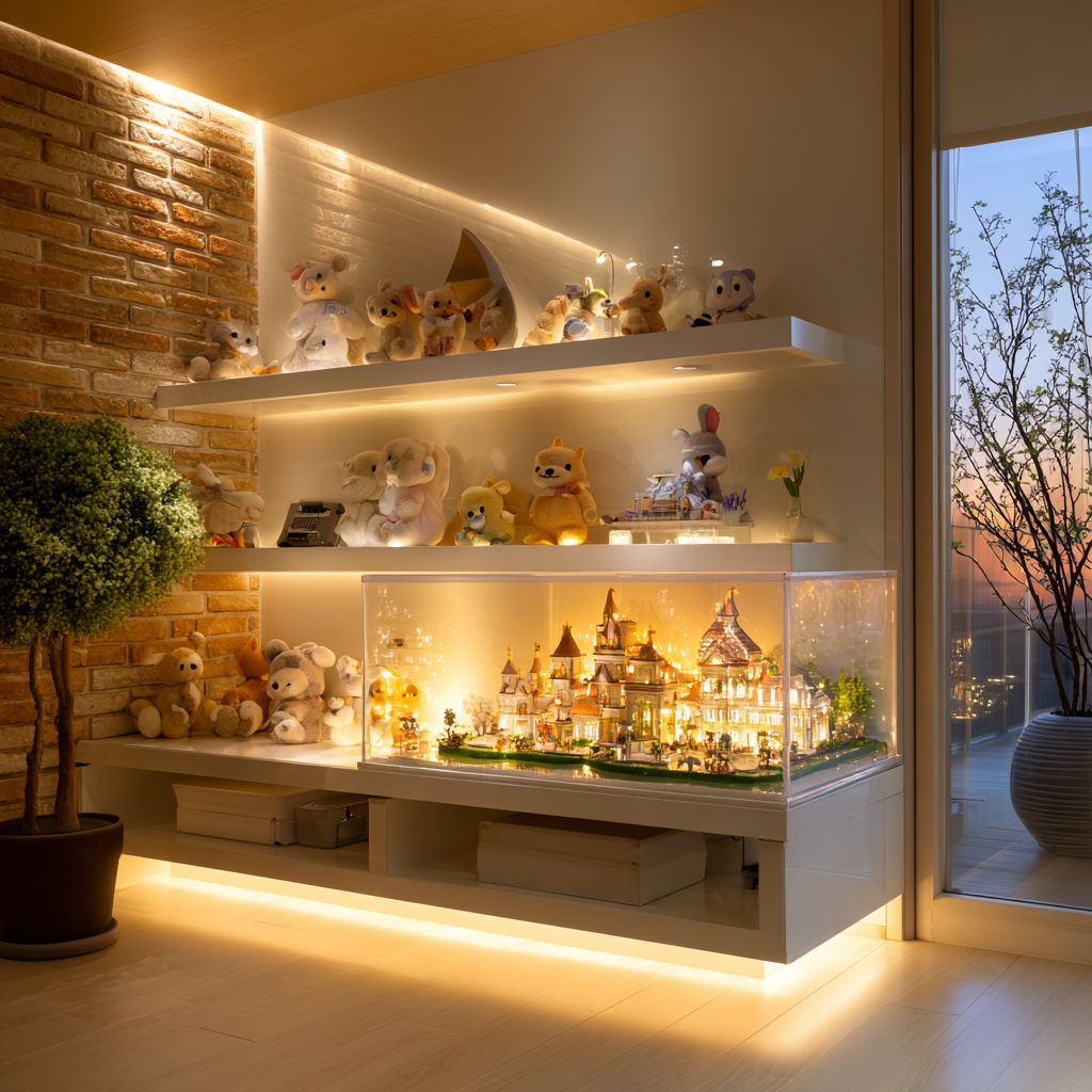 좁은 공간이라면 아크릴 케이스형 진열장을 여러 개 쌓아 올리는 것도 좋은 방법이에요. 깊이는 35~40cm 정도면 대부분의 피규어가 안정적으로 들어갑니다.